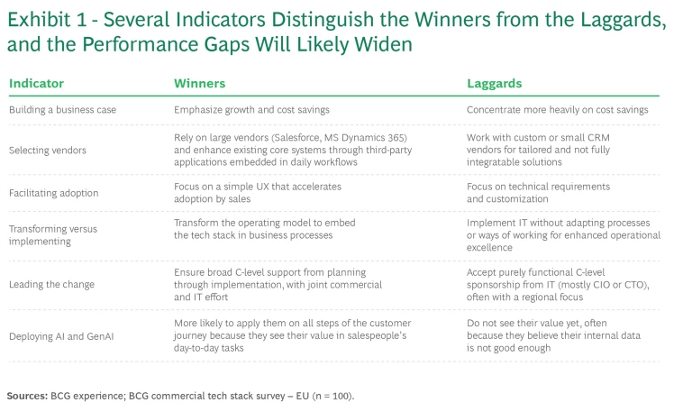Many firms have invested heavily in their commercial tech stacks over the past two years, but more than half have failed to unlock sufficient value, whether through sales uplift or cost savings. To understand the root causes of this underperformance, BCG surveyed 100 chief information officers (CIOs), chief commercial officers (CCOs), and sales leaders in European companies.