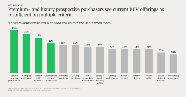 Ask premium+ and luxury consumers where BEV manufacturers fall short, and they cite four areas where products need an upgrade:
