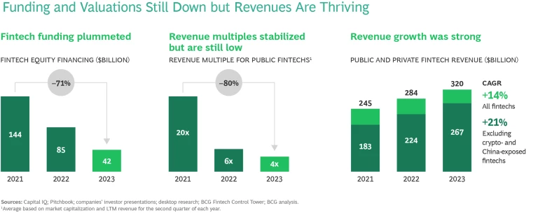 Coming off the highs of 2021, fintech revenue multiples have fallen and funding is down.