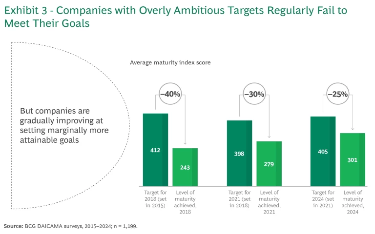 Despite historical evidence that it takes ten years on average to climb a full maturity level, the average company is aiming to improve almost that much in the next three years.