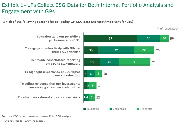 - Use sustainability data not only as a reporting tool to drive transparency but also to inform investment decisions and engage constructively with GPs on how to improve sustainability.