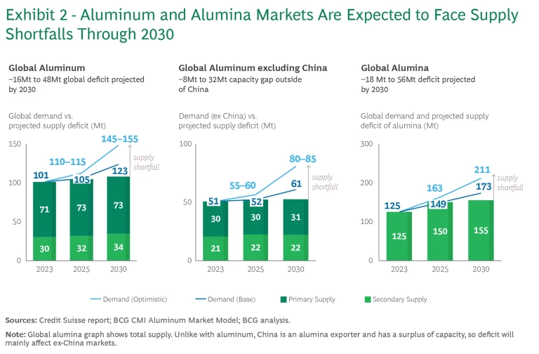 For aluminum producers, a looming supply problem is the biggest challenge of this decade. Even if demand were to increase at a modest pace, the global shortage in aluminum could amount to over 16 million metric tons by 2030—based on conservative projections. The shortfall threatens to push up prices and make aluminum far less competitive against alternative metals such as copper and steel.