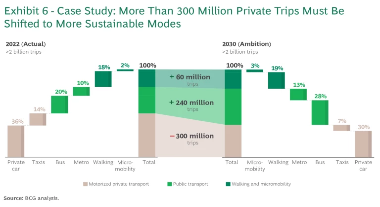 For instance, one city successfully redistributed more than 50 million trips from private to public transport and micromobility in less than a year—a 3% to 4% modal shift. This rapid progress represented about a quarter of the city’s total transformation goal. By achieving quick wins, transport authorities can build confidence among stakeholders and the public, setting a positive precedent for the more complex initiatives that will follow.