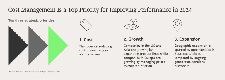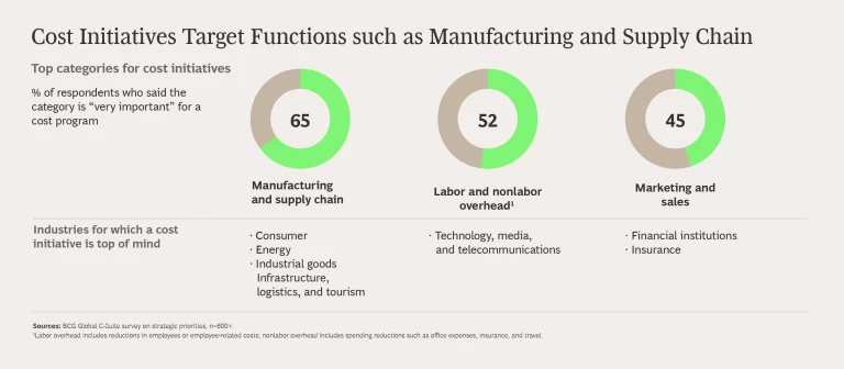 According to new BCG research, executives are initiating enterprise-wide cost campaigns, targeting such functions as manufacturing, supply chain, labor, and marketing and sales.
