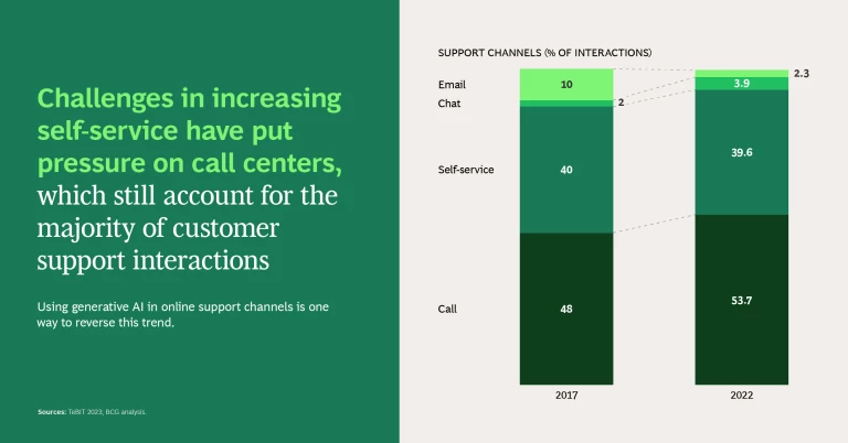 One reason online isn’t the main support channel for many telcos is that the experience is often dissatisfying. But if customers can talk with AI agents in the same way they talk to human agents, they’ll be more likely to use self-service, freeing up humans for more complex requests and improving efficiency. Enter generative AI. This emerging technology has the ability to create original content, whether text or dialogue, enabling richer, more efficient online experiences—and faster, more successful self-service.