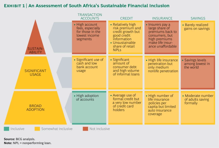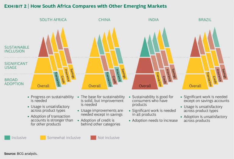 Most efforts elsewhere are focused on transaction accounts, an area of relative strength in South Africa. The nation’s challenge will be to increase adoption across the full suite of financial services products.