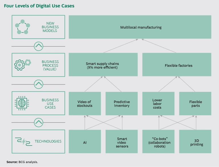 This is one reason that BCG is building a library of digital “use cases” across all sectors and all parts of the value chain. We assess them continuously for their stage of development and the tangible value they deliver today in real businesses, even as we add new examples. CEOs should demand clarity within their own organizations on the digital use cases that can have the biggest impacts on their businesses.