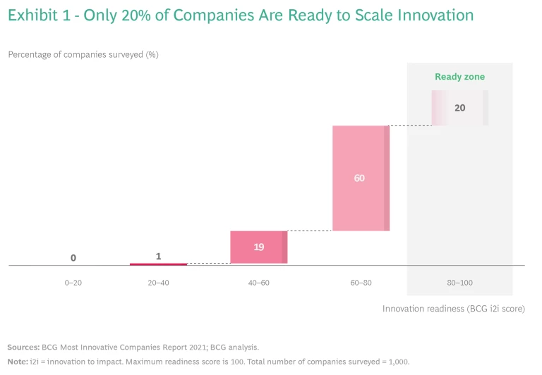 Gaps in readiness exist even among committed innovators, suggesting that many companies may fail to realize their ambitions.