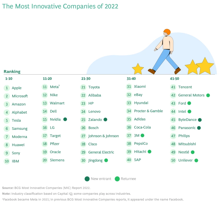 Many of the companies on our 2022 list of the 50 most innovative companies were among the earliest to embrace environmental, social, and governance (ESG) principles and to establish decarbonization commitments. Almost 80% (39) rank among the top C&S innovators, according to global peer votes.