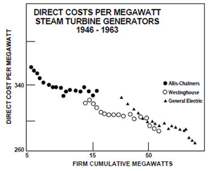 It has been known for many years that labor hours per unit declined on repetitive tasks. This effect was particularly easy to observe in such things as aircraft production in wartime. The rate of labor decrease was characteristically 10 to 15 percent approximately per doubling of experience. This expectation has long been a part of military contracting.