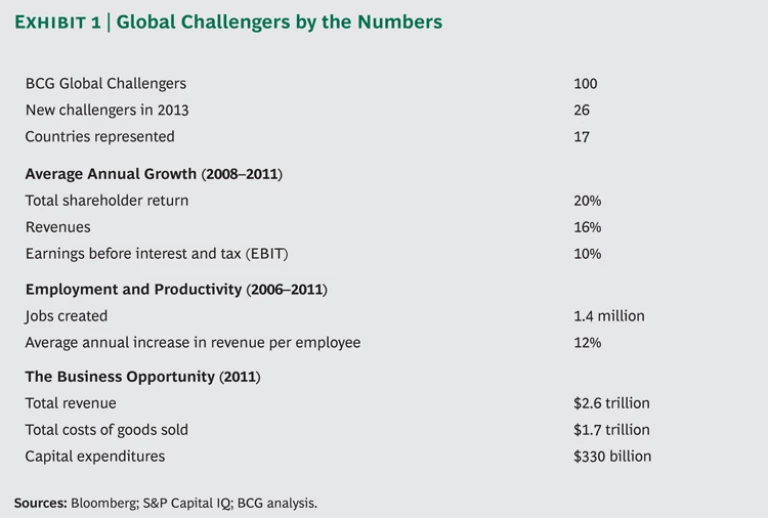 The Boston Consulting Group (BCG) published its first list of 100 global challengers in 2006. The original list was meant to be a wake-up call to executives of multinationals. Today, global challengers are not just competitors but also lucrative customers and potential partners. More broadly, they are emblems of the new order in which emerging markets will power global growth.