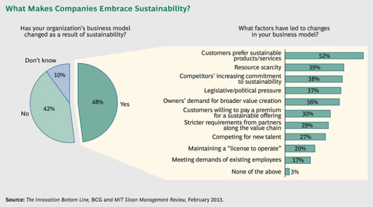 Our fourth annual survey of executives and managers, conducted with MIT Sloan Management Review, found that nearly 50 percent of companies have changed their business model as a result of sustainability issues—a 20 percent jump over last year. What’s driving companies to transform not just their products or packaging but also their value chains, cost models, and organizations?