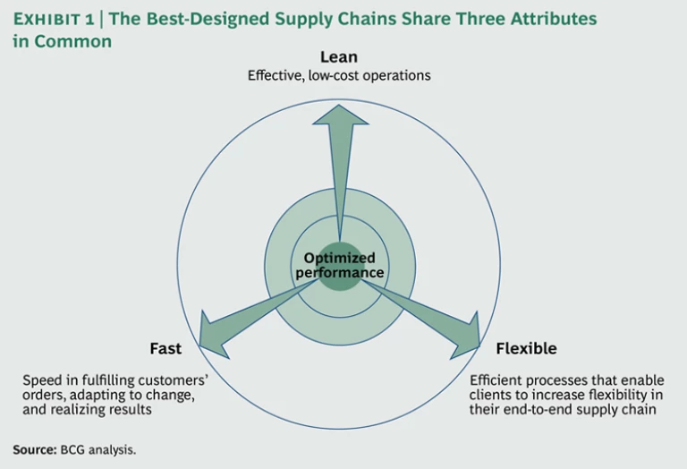 BCG’s analysis has found that the best-designed supply chains share three common characteristics, as illustrated in Exhibit 1:
