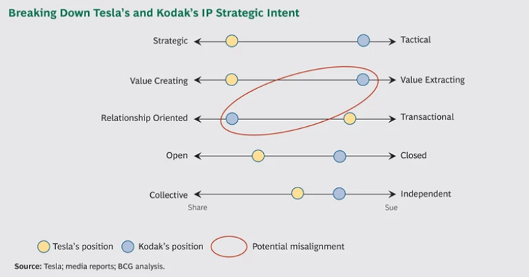 The Overall Verdict. Assessing Tesla’s move using the five dimensions of our IP strategic-intent framework reveals how working between the extremes of sue and share can significantly enhance an organization’s competitive advantage.