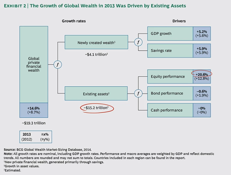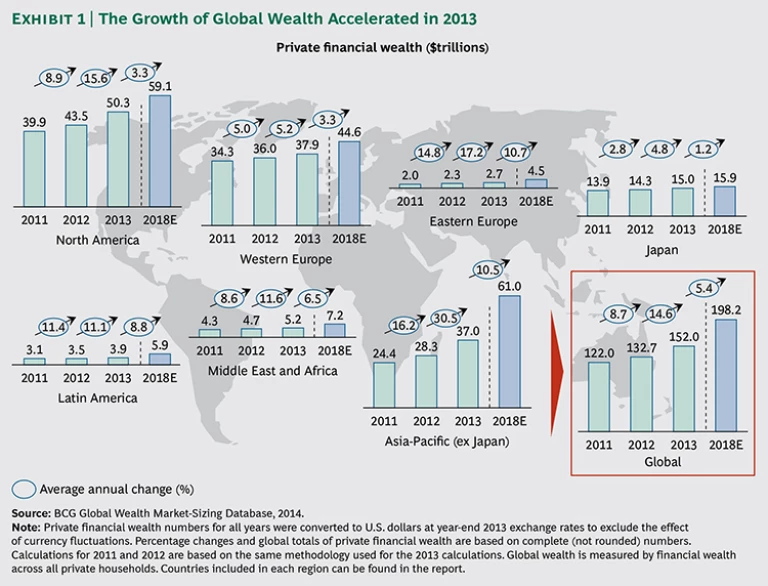 Global private financial wealth grew by 14.6 percent in 2013 to reach a total of $152.0 trillion.