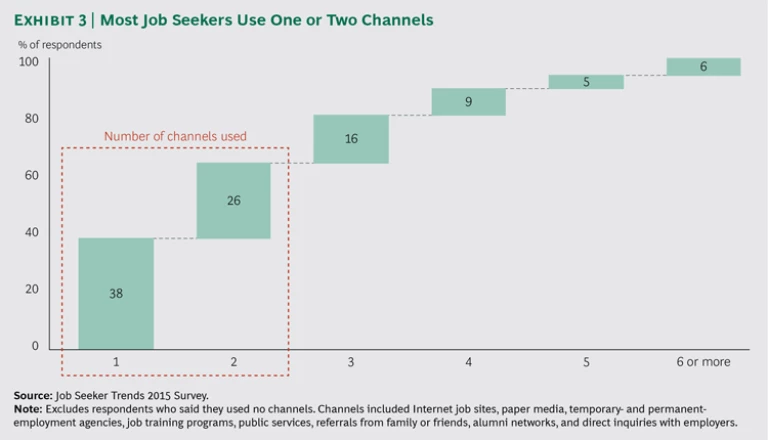 Multichannel Job Searching. We found that job seekers use a variety of search channels and rate many of them as effective. Consequently, companies must be prepared to field inquiries and applications from an array of channels, including, among others, print media, referrals, and agencies, as well as the Internet. How good is your company’s coverage of multiple channels? Can you identify differences among candidates on the basis of the channels they use? Does your company tailor its message to each channel—for example, using referrals to attract older, relatively uneducated candidates for some posts and the Internet to draw in younger, better-educated applicants for highly skilled positions?