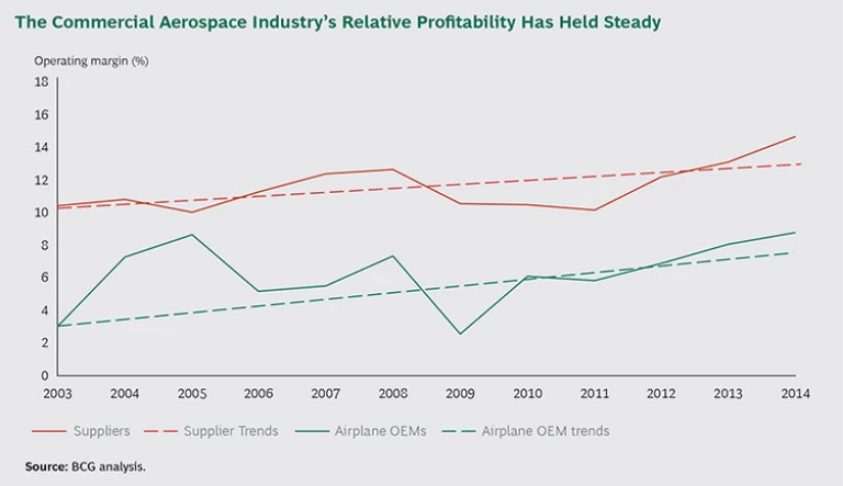 None of these tactics has significantly reduced the profit disparity between suppliers and airplane OEMs during the past decade, however, and they are unlikely to create a meaningful change in the future. Quite simply, more stringent OEM procurement processes have not addressed the fundamental economics underlying commercial aircraft manufacturing.