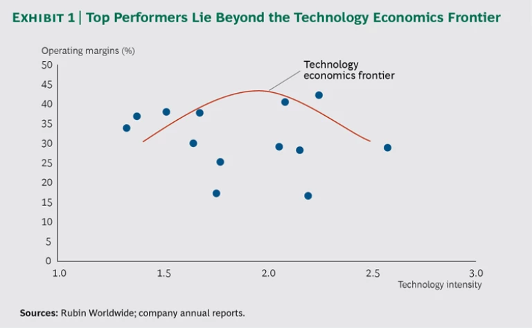 In this article, we argue that each industry has an optimal level of spending on technology and that it can be determined on the basis of technology intensity. The diagnostic we outline is superior to conventional approaches, such as simply assessing technology spending as a percentage of revenues or operating expenses without considering business performance. Consideration of technology intensity in the context of profitability links technology and business performance in a new way and provides a basis for maximizing and optimizing the return on technology investments. This structured way of investing in technology can differentiate companies from their competitors and deliver tangible results.