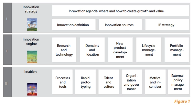 An effective innovation management system comprises three core components: innovation strategy, innovation engine, and enablers. (See Exhibit 1.)