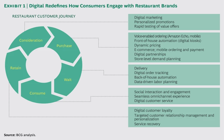 Clearly, there will be no one-size-fits-all digital strategy for restaurants. Variances in consumers’ preferences and purchasing occasions, as well as differences in restaurant business models and economics, mean that multiple permutations and combinations will coexist. The number of options and variants will increase as forward-looking brands use customer data to individualize relationships and dining experiences and as their own ability to personalize at scale becomes more of a marketplace reality.