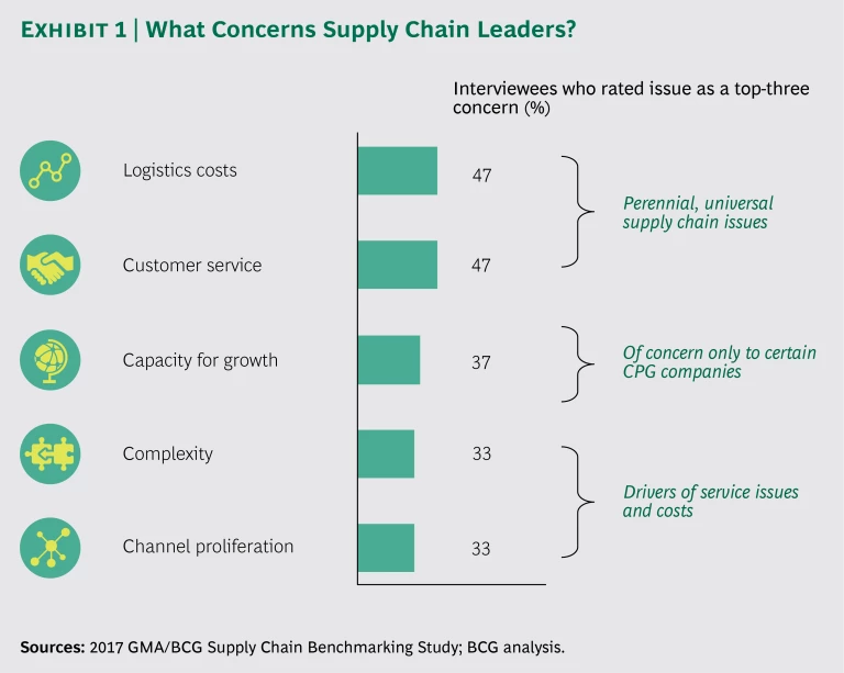 The study is based on four components: surveys of more than 30 leading CPG companies; in-depth interviews with 68 supply chain leaders (with an emphasis this year on e-commerce); interviews with industry experts; and BCG research on e-commerce and supply chain trends and practices. The study was conducted in 2017 and is based on 2015 and 2016 data.