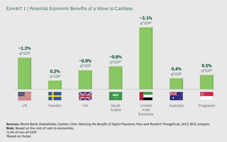Cash is no longer king. In fact, economies that are more cash intensive tend to grow slowly and miss out on significant financial benefits. Conversely, economies that switch to digital are more successful; the switch can boost annual GDP by as much as 3 percentage points, BCG research shows.