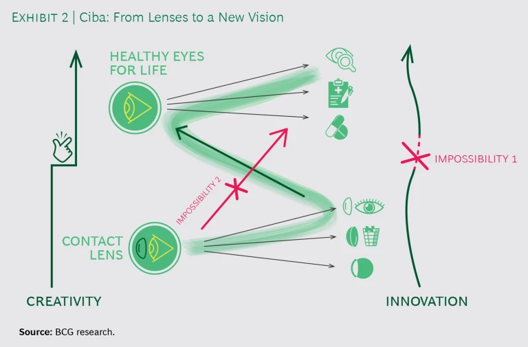 Ten years later, sales (which had been stuck at about $300 million a year) had more than tripled, to more than $1 billion, and the new drug, transferred to Novartis’s pharmaceutical unit, was on its way to becoming a billion-dollar business. What enabled such a breakthrough at Ciba Vision was not just an incremental process of innovation but a new way to frame the problem, opening the door to a different way of thinking about the business.