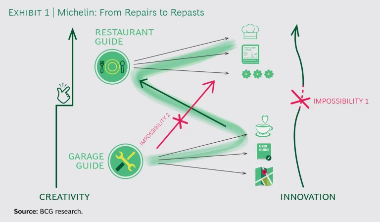 Rather than seeing this only as an incremental improvement, Michelin also made a mental shift, transforming a directory of garages with information about restaurants into a directory of restaurants. That represented a breakthrough. And the restaurant directory led to further improvements—and so the idea to rank restaurants with “Michelin Stars” was born.