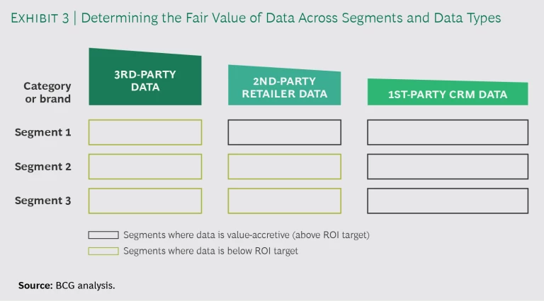 CPGs should not run this calculation once—rather, they should de-average this assessment by category and type of data to identify parts of the business where applying a specific advanced analytics marketing use case can be especially impactful. By understanding the value of data, companies can assess how much they’re willing to pay for external data—and, for CRM data, how much they’re willing to invest in building capabilities to capitalize on that.