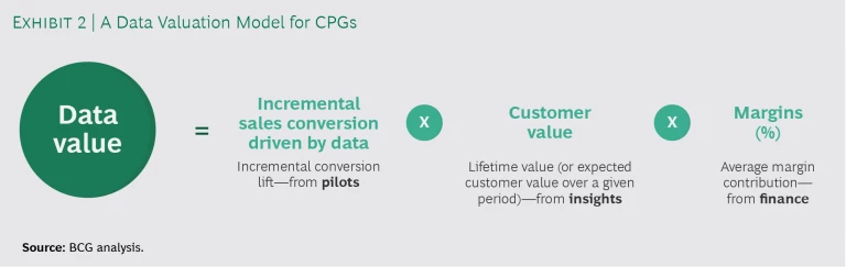 Companies can invest in programs to capture data from their consumers, but they need to focus on the right categories and brands, using the right tactics. To help CPGs make this determination, we developed a model to assess the value of the data, incorporating three key drivers: incremental impact of leveraging data; customer value; and category margins. (See Exhibit 2.)