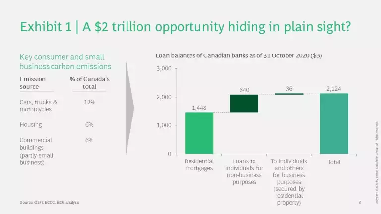 What does all this mean for banks? Canada’s banks hold roughly $1.4 trillion in mortgage balances. At some point in the next decade or two, most mortgaged properties will require upgraded insulation or heating sources to meet energy guidelines. Based on BCG research done in Germany, the refurbishment rate could rise from 1.1% per year to 1.7%.