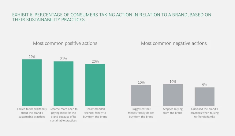 - Sustainability is a long-term play – don’t disregard actions that don’t directly impact top line. Consumers respond in a variety of ways including sharing on social media or recommending or dissuading friends and family. While these actions may not directly impact the top line, they raise awareness (positively or negatively) for other consumers, ultimately creating a cycle of awareness and response.