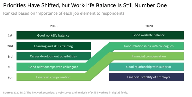 Some job attributes that digital workers care about have, despite the pandemic, remained constant since our last poll in 2018. Chief among them is maintaining an equitable work-life balance.