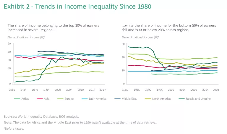 A look at the trends in income and opportunity inequality globally and within individual countries shows that although there has been progress in some areas, inequality remains a significant challenge, and one that is likely to become more prominent in the wake of the pandemic.