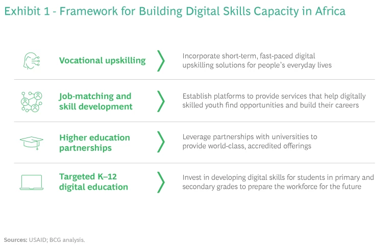 If you would like to learn more about emerging trends and policy developments in digital skills and climate analytics in Africa, read the full report, Transformational Development in Africa. The report was commissioned by the USAID Mission to the African Union and prepared with support from Boston Consulting Group.