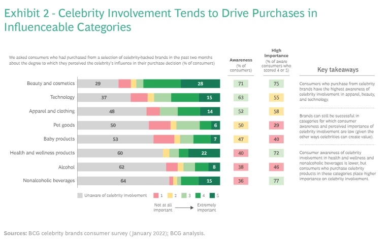 Investors, for example, have been encouraged by numerous proof points of successful collaborations that led to lucrative deals, according to BCG research. They also tend to perceive celebrity-brand partnerships as relatively low risk.