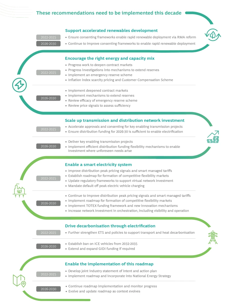 The next decade is critical for Zealand’s transition to net zero carbon. With decisive, early action supported by the right policies, regulation, and market settings, the country’s electricity system can: