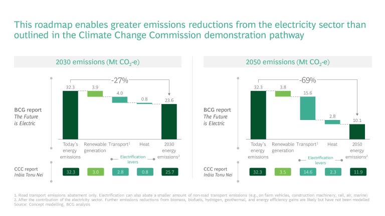 - by 2050, enable rapid electrification of transport and heating, reducing New Zealand’s emissions by 22.2 Mt CO2e per year.