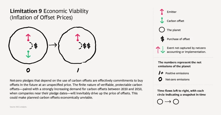 - Ensure sustainable economics for decarbonization and offsets. Plan for carbon economics to shift over time as demand for offsets and sustainable inputs create new scarcities and price inflation, to address the limitation of economic viability.