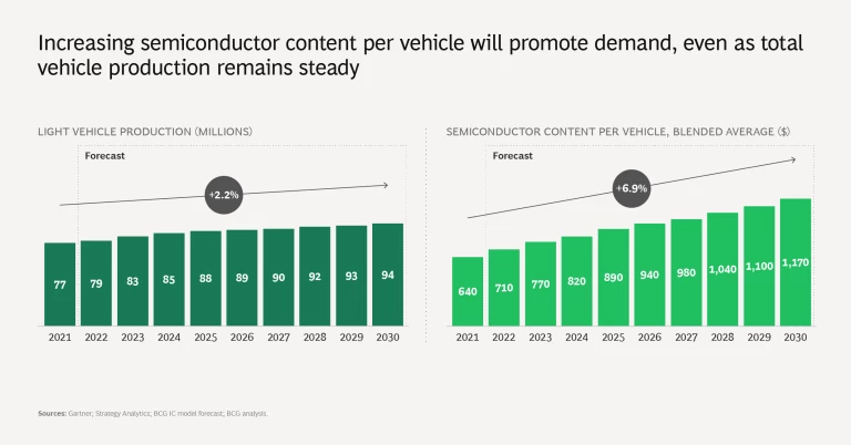 We expect the automotive semiconductor market to grow by more than 9% annually through 2030. The adoption of electric vehicles and ADAS will substantially increase the semiconductor content in automobiles, even as production volume remains steady.
