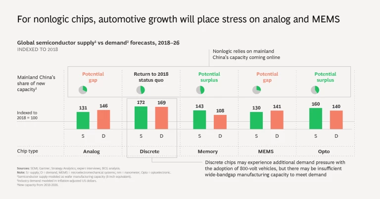 - Second, the tight supply for analog and microelectromechanical systems chips will likely persist, in part due to the comparative cost penalty of new versus fully depreciated fabrication plants acting as a headwind to new investment.