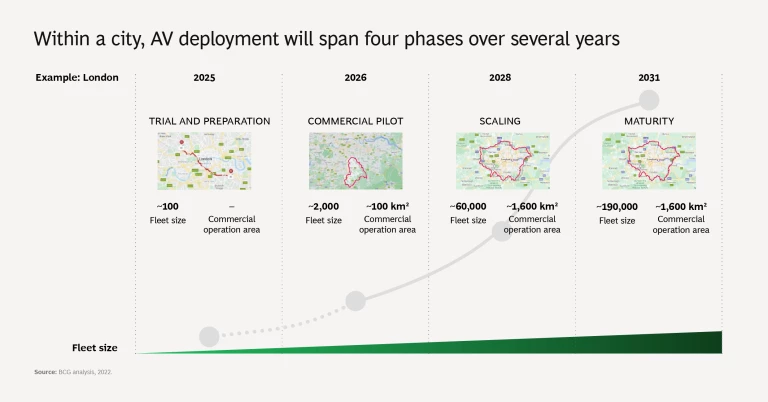 As SAEVs come to market, most regions will be served by just two or three major AV players, given the need for scale and multimillion-dollar R&D budgets. These requirements are spurring consolidation.