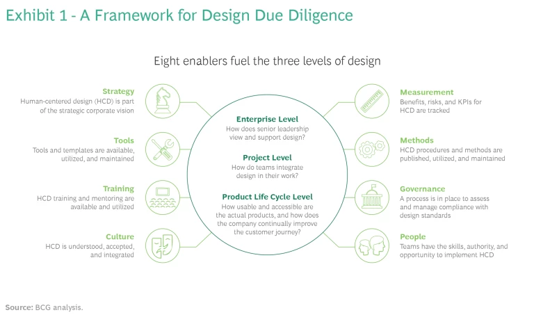 The key is to take a holistic perspective. Due diligence requires looking at how an organization approaches design on three distinct levels: