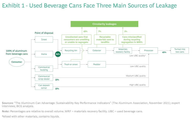Aluminum, which is found in everyday items from cans to cars, provides clear insights into the workings of recycling ecosystems in general because, unlike other materials, it can be infinitely recycled without losing its original properties. Understanding the frictions and squeeze points in the aluminum ecosystem—and applying these lessons to other parts of the circular economy—can help players navigate recycling bottlenecks.
