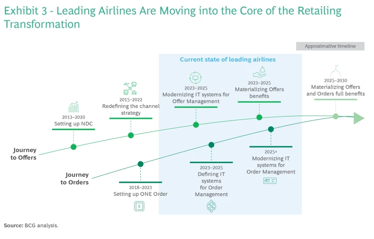 Yet, even the most aware players need more information to fully understand the transformation’s size, impact, complexity, and technical implications. Some think their processes won’t change much because they already use APIs and other modern technologies, or because they already integrate with low-cost carriers leveraging their ticketless technology. But intricate airline commercial processes are deeply rooted in legacy practices. Switching to retailing is unlikely to be “plug-and-play” for any player.