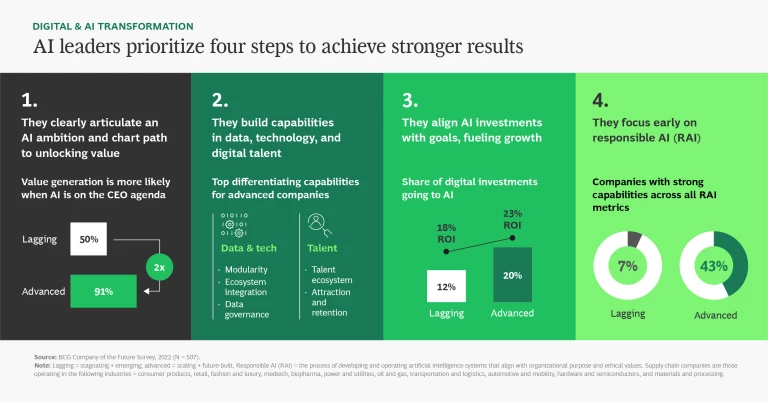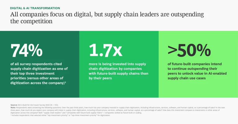 - Digitization is especially important for companies looking to become supply chain leaders, and they must overcome barriers to scaling that effort. Many companies invest heavily in an AI and ML transformation but fail to fully realize its potential value at scale. In addition, advanced companies are rapidly adopting generative AI for use cases throughout the supply chain.