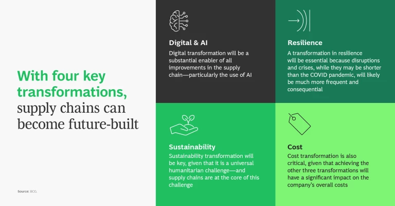 To create a digitized, resilient, sustainable, and cost-effective supply chain, businesses need to further invest in digitization in order to support agile decision making and adaptability through tools such as AI and machine ML. They should create a sustainable supply chain that meets the demands of today’s universal humanitarian challenges. And they should always keep an eye on costs, reducing them throughout the transformation where possible.