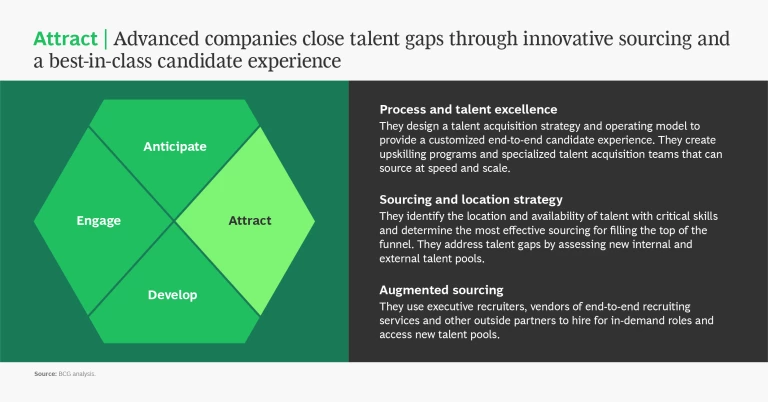 - Attract—Close talent gaps through innovative sourcing and by offering a best-in-class candidate experience.