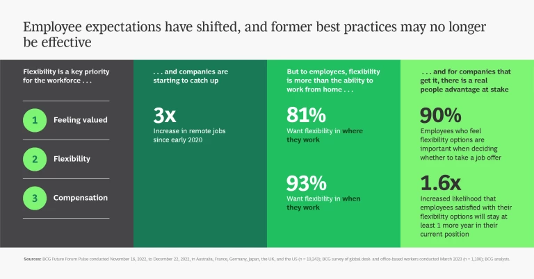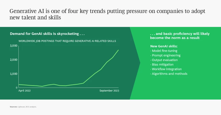 To respond to ongoing technology, hiring, and other trends, organizations have to cultivate a variety of new talent and skills. They need people who understand AI well enough to write prompts and integrate the technology into existing IT systems. They need a larger cybersecurity workforce to counter persistent attacks and technology security threats. They need more people with “green job” skills to meet ambitious net zero targets and address climate change. At the same time, employees’ expectations have shifted. Feeling valued and having flexibility are key priorities that organizations can’t ignore in their workforce and hiring practices.