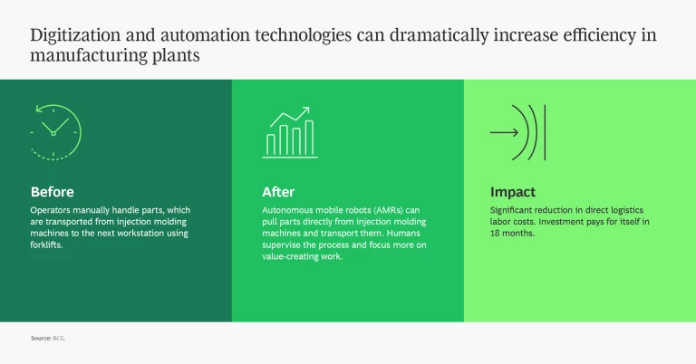 - Digitization and Automation. Building real-time transparency, increasing predictability, and automating plants via self-controlled systems.